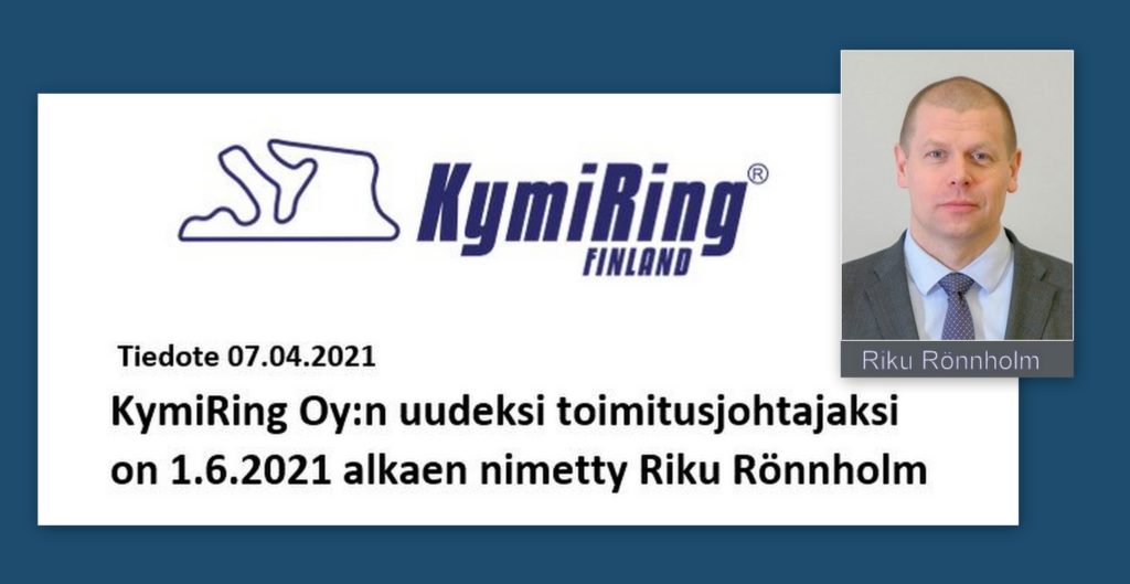 KymiRing Oy:n hallitus on nimittänyt yhtiön uudeksi toimitusjohtajaksi varatuomari Riku Rönnholmin. Hän aloittaa tehtävässä 1.6.2021.