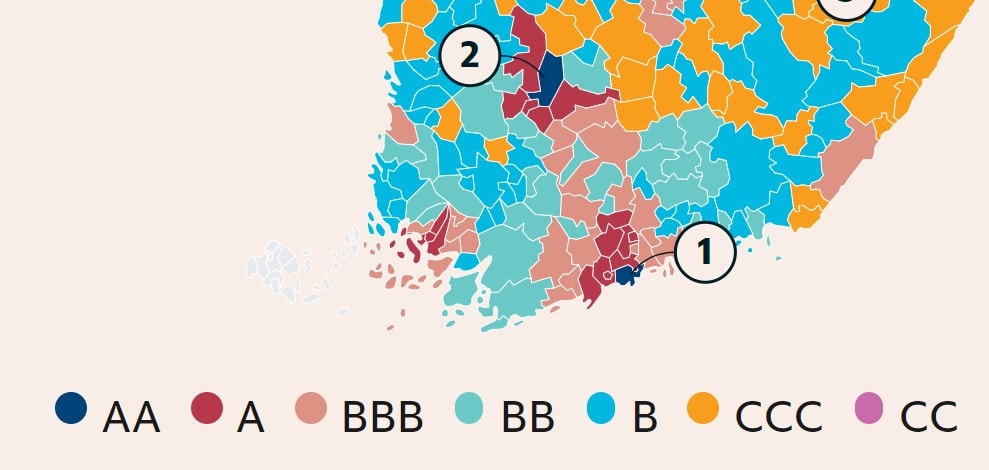 Esimerkiksi Kaarina sijoittui BBB luokkaan.