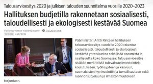 Yritysten toimintaedellytysten parantamiseksi ja liikenneyhteyksien parantamiseksi koko maassa esitetään määrärahoja useisiin infrahankkeisiin. Perusväylänpidon rahoitukseen ehdotetaan pysyvää 300 miljoonan euron tasokorotusta tie-, raide- ja vesiväylien korjausvelan kasvun pysäyttämiseksi ja korjausvelan vähentämiseksi. Yhdessä muiden korotusten kanssa perusväylänpidon rahoitus kasvaa 362 miljoonaa euroa vuonna 2020. Vaarallisten tasoristeysten poistamiseen ehdotetaan yhteensä 22 miljoonaa euroa vuosille 2020–2021. VNK tiedote