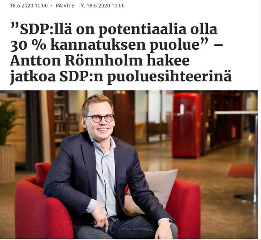 Elokuussa Tampereella järjestettävän SDP:n puoluekokouksen lähestyessä on jo odotettu puoluesihteeri Antton Rönnholmin vastausta kysymykseen, aikooko hän hakea jatkoa puoluesihteerin tehtävässä. Hän kertoo nyt Demokraatille myöntävän vastauksen syntyneen pitkän pohdinnan jälkeen.
