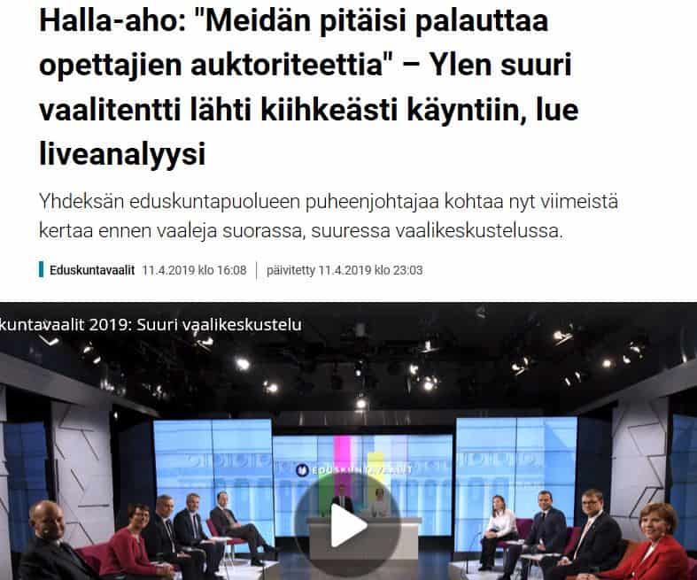 Ylen toimittajien pitäisi tehdä läksyt kunnolla, jottei sorru nostamaan kulunutta opettajien auktoriteettiasiaa otsikoihin. Vaikutelmaksi jäi, että tieten tahtoen perussuomalaisten erityisasemaa korostettiin , juuri sitä mihin he ovat pyrkineet. Muut mediat sentään näkevät vähän taktiikan läpi eivätkä vahvista tätä mielikuvapolitiikkaa. Julkisen median ammattitaitoa ei voi kovin kummoisena pitää.