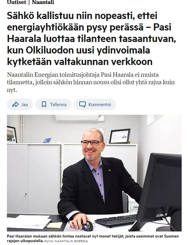 Toimitusjohtaja Pasi Haarala on Naantalin Energian toimitusjohtajuuden lisäksi myös Naantalin sataman CEO. Yksi Naantalin vaikutusvaltaisimmista toimijoista.