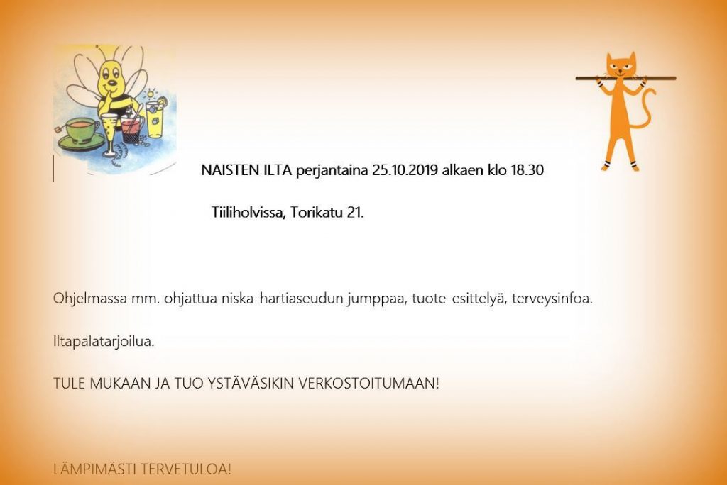 Naisten ilta on tiedossa. Pankaa muistiin, toivottaa Jaana kaikkien puolesta!