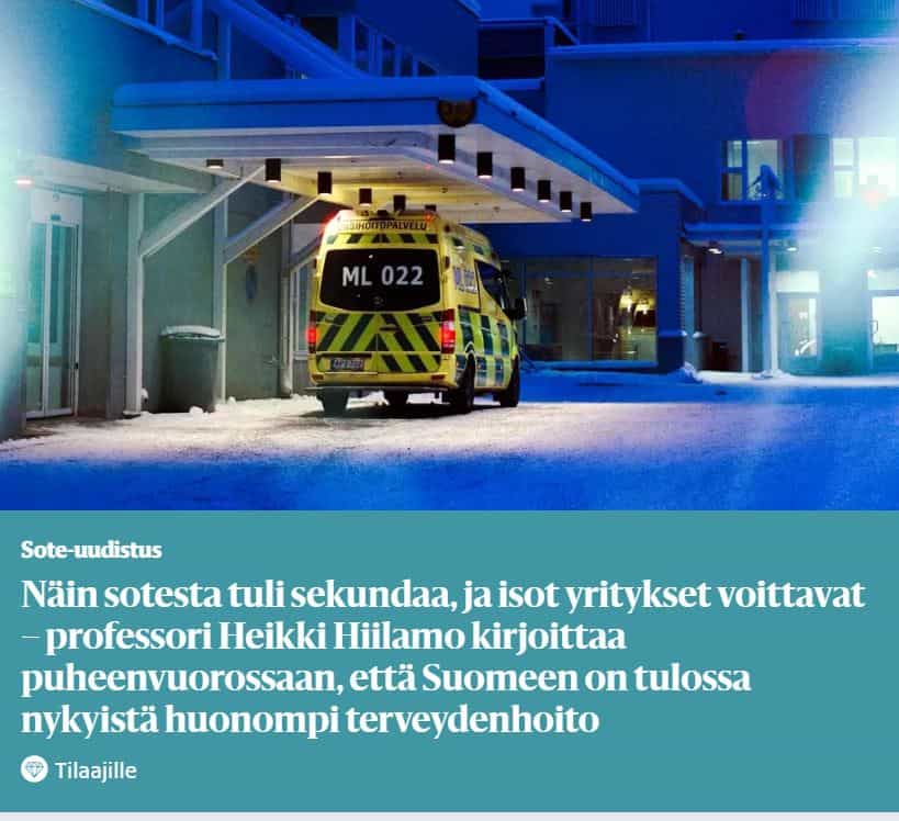 Poliitikkojen parahdukset ja yrityksille osoitetut toiveet maltista ovat surkuhupaisia ottaen huomioon, että sote-lait olisi jo hyväksytty ilman poliittista peliä maakuntamallilla ja valinnanvapaudella. Hiilamo HS 10.12.2019 kts. oheien kuvakaappaus