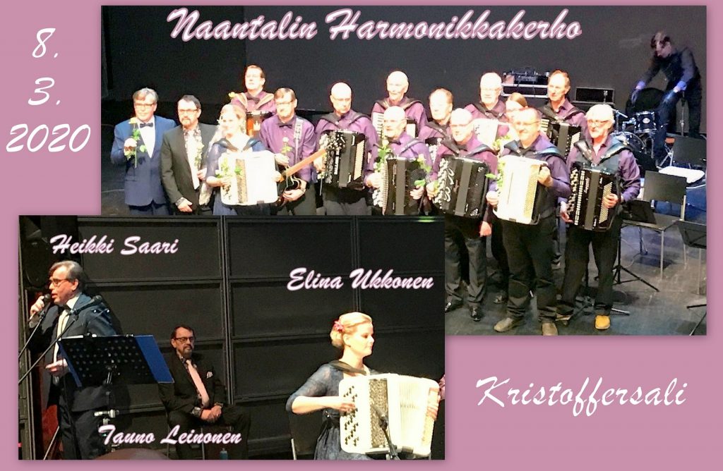 Naistenpäivä jätti jälkensä. Naantalin Harmonikkakerho soitti ja lauloi naisille naispuolisen Suomen pelimannimestaruuden voittaneen Elina Ukkosen johdolla.
