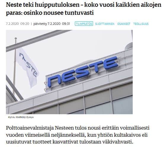 Kauppalehdessä hehkutettiin Nesteen loistotulosta.
