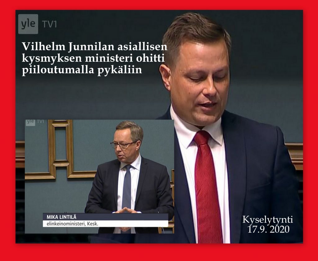 Vilhelm Junnila oli oikealla asialla ihan tyylikkäästi kysymällä ministeri Lintilältä: