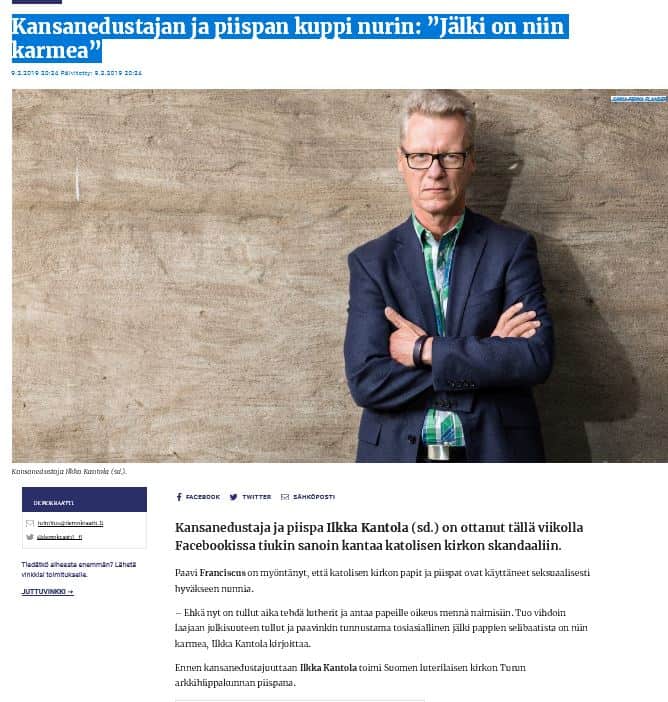 Katolinen kirkko oli aikanaan syytä kaataa. Teesejä tarvittiin jo 1500 luvulla. Eikä vieläkään katolisuus vastaa tasa-arvoista ihmiskäsitystä. Ilkka on oikeassa puutuessa asiaan. Samalla hän- vaikka onkin hienotunteinen- jättää mainitsematta, että Suomessakin korkealla tasolla on tuota katolisten epäoikeudenmukaisuutta. Eikä kansa tiedä!
