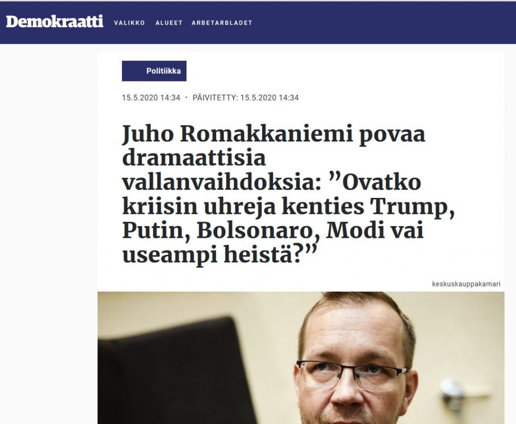Jos niin onnellisesti käy, että kansalaiset korona-asioiden käsittelyn yhteydessä vihdoinkin havahtuvat tunnistamaan näiden johtajiensa kyvyttömyyden ja vaarallisuuden, niin syy ei ole koronan, vaan syy johtajissa ja heidän oikeistolaisissa aatteissaan.