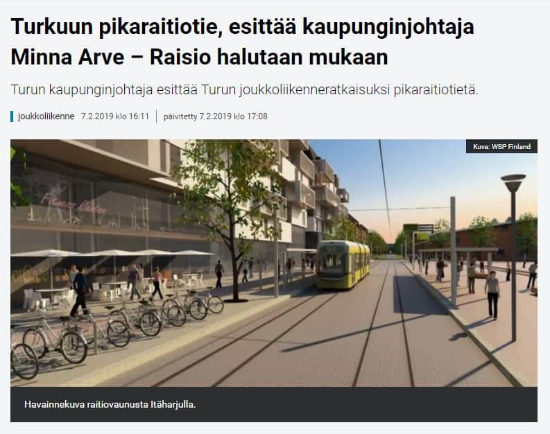 Minna Arve, kok valittiin vihreiden tuella Turun kaupunginjohtajaksi. Päivät ovat politiikassa peräkkäin ja nyt maksun aika. Minna Arve esittää pikaraitiotietä aina Raisioon asti.