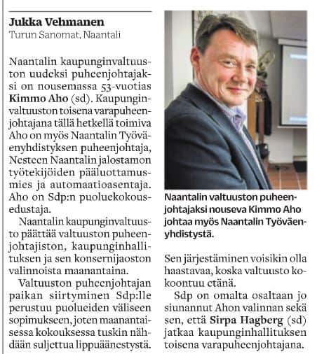Ahon mukaan Naantalin poliittinen ilmapiiri on kunnossa lehtikirjoituksista huolimatta.