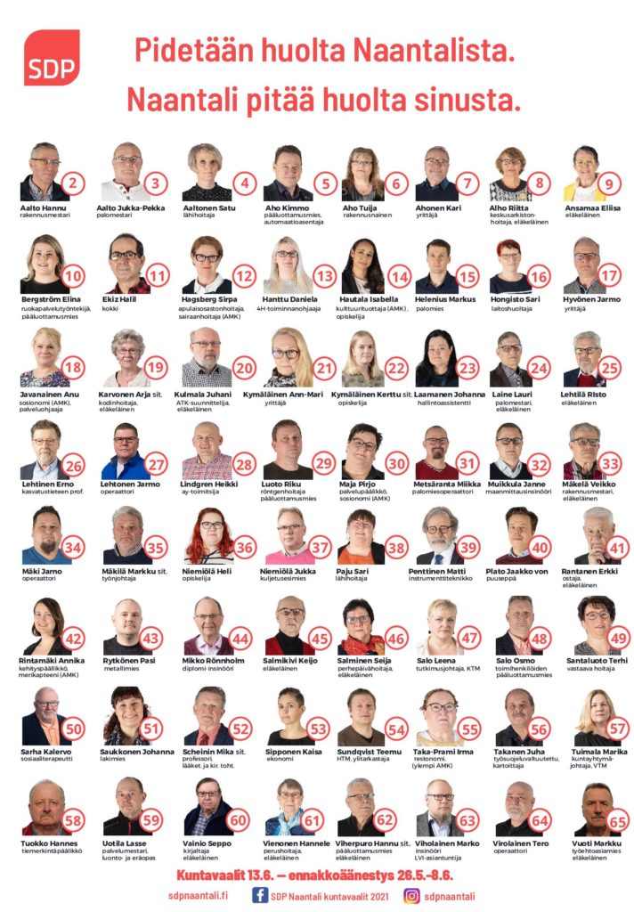Tyytäväisenä ja kiittollisena on ilo esitellä Naantalin kuntavaalien hieno SDP:n ehdokaslista:
