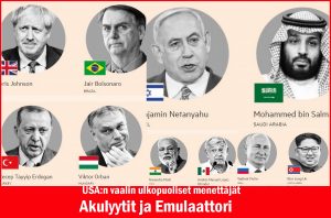 Yhdysvaltain presidentti vaikuttaa paljon globaalin politiikan sävyyn . Ovaalitoimiston isännän käyttämät teemat ja kieli leviää nopeasti ympäri maailmaa. Useimmat kansat haluavat ystävällisiä suhteissa maailman voimakkaimpaan maahan. Donald Trump on kerännyt akolyyttejä ja emulaattoreita (seremonia avustaja ja jäljittelijä) Amerikan ulkopuolelta. Herra Trumpin suosikkilausekkeet – kuten ”väärennetyt uutiset” – poimivat niin erilaiset johtajat kuin brasilialainen Jair Bolsonaro ja israelilainen Benjamin Netanyahu. Muotia on ollut myös ”liberaalien eliittien” tuomitseminen Intian pääministerin Narendra Modin kannattajien ja Ison-Britannian Brexiterien suissa..