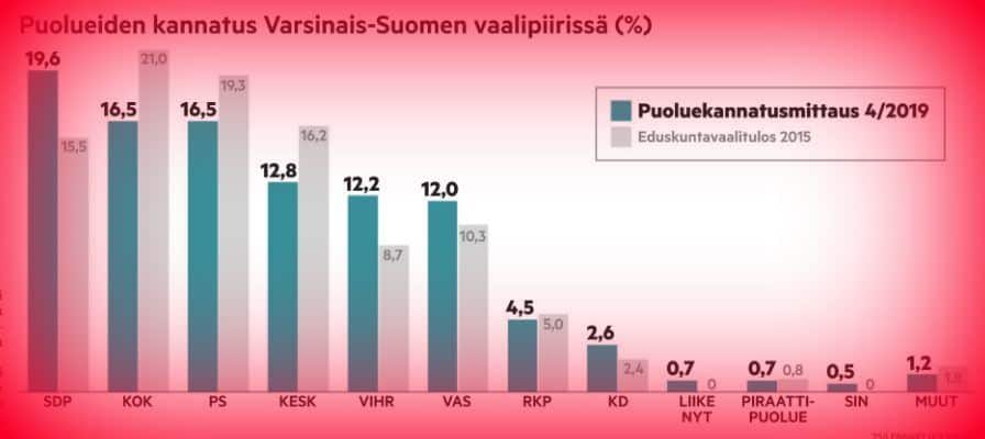 Turun Sanomien teettämän gallupin perusteella SDP olisi maakunnan selvä ykkönen.
