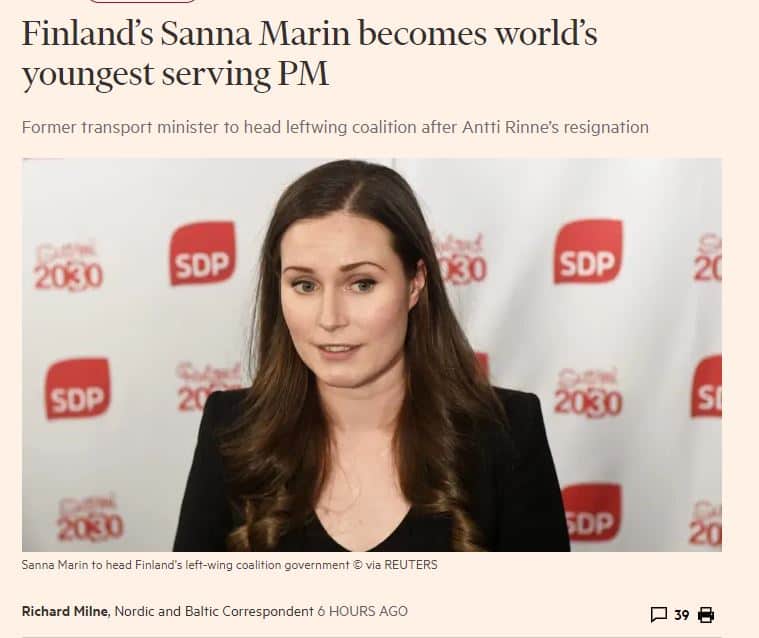 Sanna Marinin valinta ylitti uutiskynnykset maailman lehdistössä.