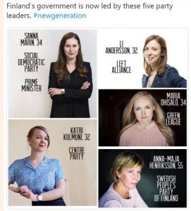 Se on juttu sinänsä, mutta kun koko viisikko nuoria ja naisia. Niin, että tasa-arvo on nyt saavutettu. Sanna Marinia ei valittu tehtäväänsä naisena, vaan näyttöjen ja uskottavuuden vuoksi. Näin arvioivat puoluevaltuuston valinnan tehneet useat edustajat. Joten tältä pohjalta eteenpäin. Kyllä sanna yksinkin pärjää, mutta porukan tuella varmemmin!