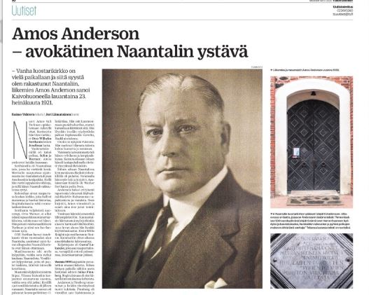 Raimo Vahtera jatkaa, kuten kuvakaappaus TS:n sivuilta kertoo, Naantalin historian kirjoittamista. Aiheeksi valittu Amos Anderson on melkein unohdettu Naantalissa. Kiitos siitä.