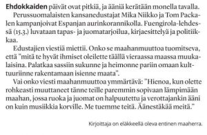 Perussuomaliset hohoi. Naantalin Vilhelm Junnilan, ps slogaani: Kotiin paluun aika ei kantaudu kaikkialla ja niinpä puolueen onkin haravoitava ääni muilla tempuilla. Tutkivan journalistin julkikaapuun pukeutunut pitkän linja isänmaan rakentaja ja yhteiskunnallinen vaikuttaja Rauno Saari kirjoittaa. Voi kunpa kansalaiset jaksaisivat nähdä vaivaa ja lukea sekä sen jälkeen miettiä mitä suomalaisuus ei ole.