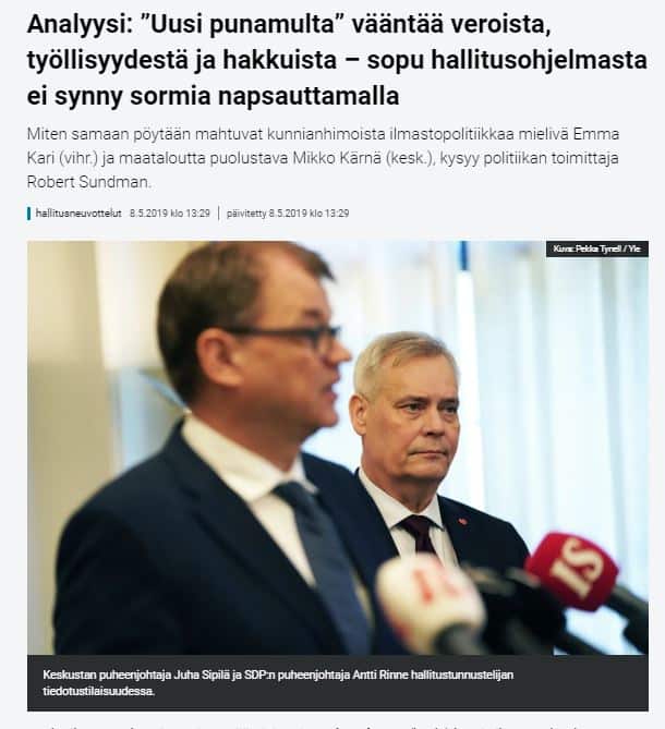 Voisiko se olla henkilötason liima? Ihan heti tämäkään ei tunnu ilmeiseltä. Luottamus on siis rakennettava. Ja siinä on kova savotta. Onnea yritykselle ja pidetään peukkuja sekä toivotaan, ettei yhtäkkiä huomatakaan, että maassa kaikki jatkuu kuten ennen vaaleja: Kokoomus, Perussuomalaiset ja Keskusta voivat astua uudistuneena uuteen liittoon.: Rinne Keskusta valitsemalla on pessyt heidän pyykkinsä ja lakaissut nykypääministerin Juha Sipilän synnit maton alle.
