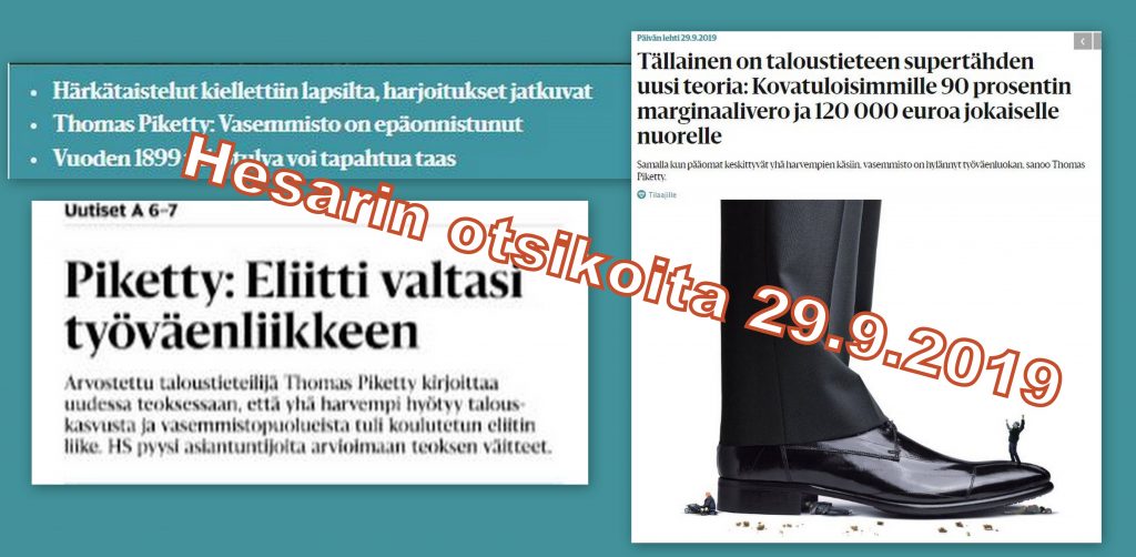 Jutun otsikko oli: Omaisuus ja uudet ideologiat. Kannatta verrata sitä Hesarin tarinaan.