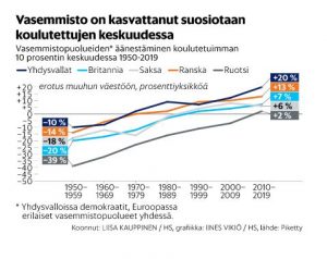 Työväenpuolueista on tullut koulutetun eliitin puolueita, Piketty tulkitsee.” lainaus artikkelista