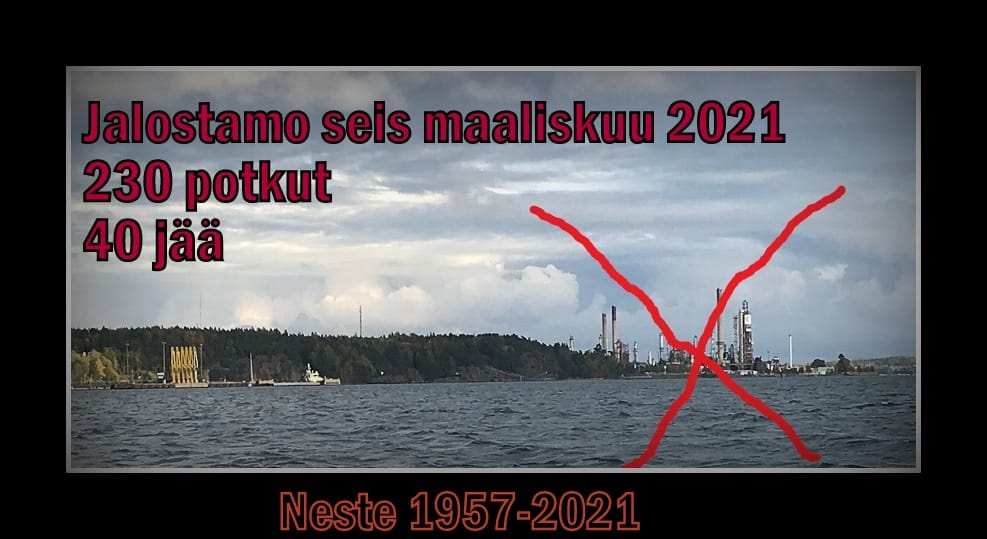 Nyt on aika sitten yhteiskunnan toimia ja vaatia samaa ripeyttä ympäristön välittömäksi ennallistamiseksi. Alue on otettava tehokkaaseen käyttöön. Sitä ei saa blokata vain Nesteen marginaaliseen toimintaan. Kaupungin on oltava tiukkana. ja viranomaisten ehdottomia.