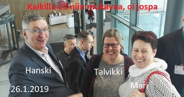 Ilo olla mukana, kun kaikilla on kivaa, vaikka asiat ovatkin pääroolissa. Täällä on vahva usko ja tilaisuuden avaus sujui vauhdilla ja päätyi bussikuski Antti Rinteeseen. Hyvä keksintö.