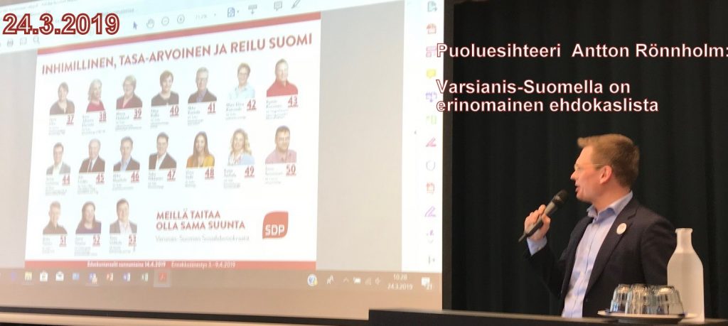 Puoluesihteeri Antton Rönnholm kertasi vaalin keskeiset aiheet ja arveli, että jos pidetään kiinni laajasti valmistelluista ohjelmakohdista ja jaksetaan tavat äänestäjiä, niin kaikki on mahdollista.