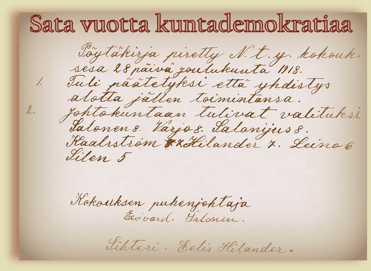 Vuoden 1918 lopulla ja varsinkin seuraavana vuonna 1919 otettiin tärkeät askeleet itsenäisen Suomen historiassa: