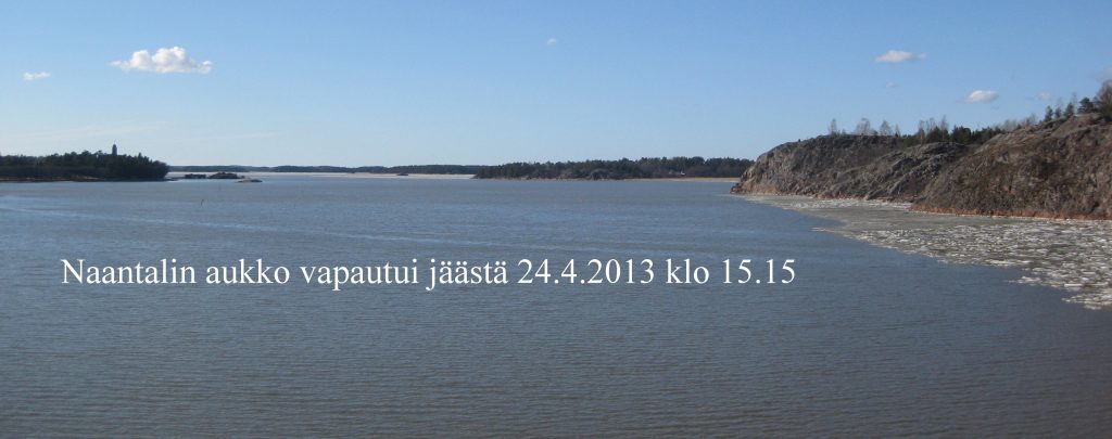 Jäiden lähdön ylituomari Ilkka Paki Tulonen julisti Naantalin aukon jäiden lähdön ajankohdan . Kolmio Pitkä laituri – Kailon kärki – Kultaranta oli riisunut lopullisesti talvikatteensa reippaan lounaistuulen avustamana eilen klo 15.15..