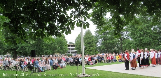 Kirkonpuiston lipunnosto onnistui, kun Jari Virta huolehtii äänentoistosta ja fanfaarista sekä lippulaulun säestyksestä trupetilla yhdessä Toivo Kääriäisen vetopasuunan kanssa. Turkulaiset Kansantanssin Ystävät tanssiesityksen lisäksi tuovat lipun ja kun vielä kirkon kellokin käy oikeaa aikaa, niin kaikki on kohdallaan. Ja apukin on aina lähellä: esilaulajan puutteen tuli korjaamaan ansioitunut tiedemies- kulttuurikirjailija professori Rauno Tirri.