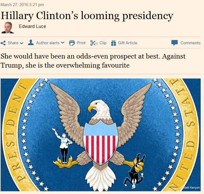 Edward Luce pitää Hillary Clintonin presidenttiyttä varsin todennäköisenä