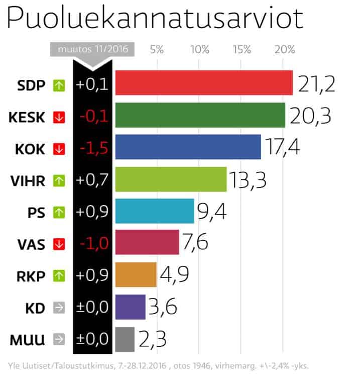 mukainen. Kesällä ollut SDP:n kannatusnotkahdus on korjaantunut