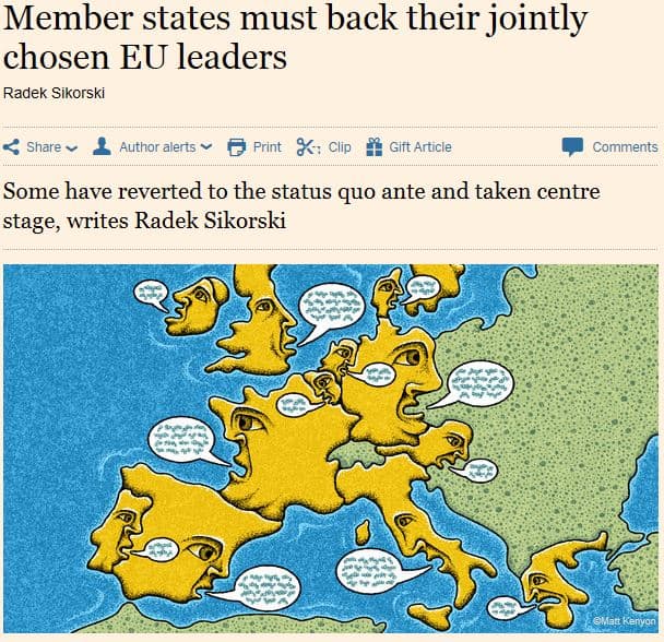 Sikorsky painotti kirjoituksessaan FT:ssä Euroopan yhtenäisyyttä ja tukea