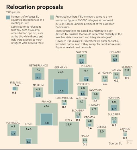 Ohessa FT:ssä ollut Taakanjakokuva, jossa  on pakolaisten määrät, joista on jo (sisempi neliö) sovittu ja määrät, joista pitäisi sopia (suurempi neliö).