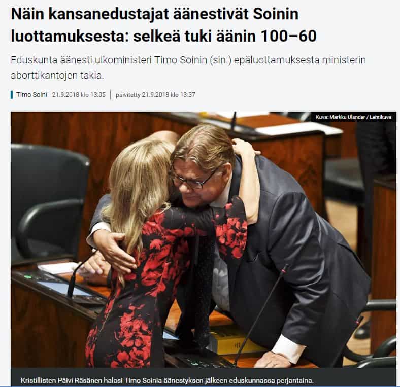 Kauhistuttavinta tässä on, että Suomesta voi syntyä eriskummallinen kuva. Mutkia suoristaen voi väittää, että abortin vastaiselle ministerillä on laajaa tukea eduskunnassa.