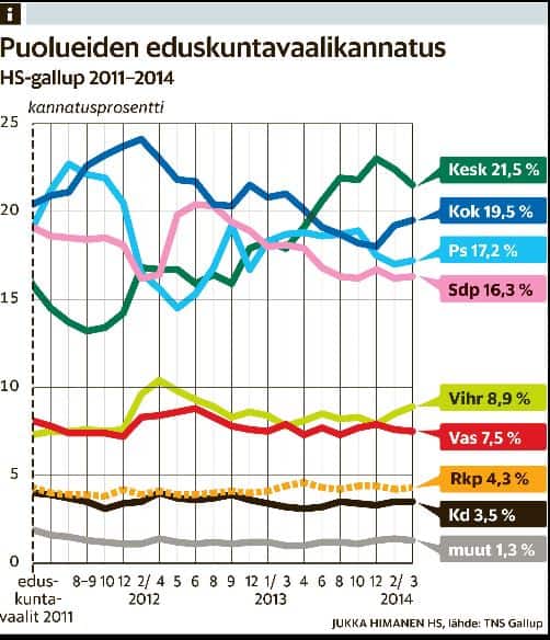 Se on relevantti kysymys. Ja veikkaukseni on, että lukemaa merkittävämpi on sijoitus. Puolueen pitäisi olla kolmas eli tämän hetken lukemiin pitäisi tulla runsaat prosenttiyksikön nousu tasolle 17,5 prosenttia.