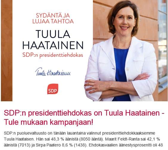Tuula Haataista pääse tukemaan tästä linkistä.