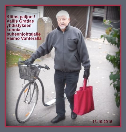 Jälleen näkemisen riemu ja ilo, että kickbike oli vain ilkikurisuuden kohteena. Ja onneksi potkupyörä oli Tullinpuistossa. Ja mikä parasta: Kotiseutyhdistyksemme kunniapuheenjohtajan haukansilmä osui siihen kauppamatkalla!
