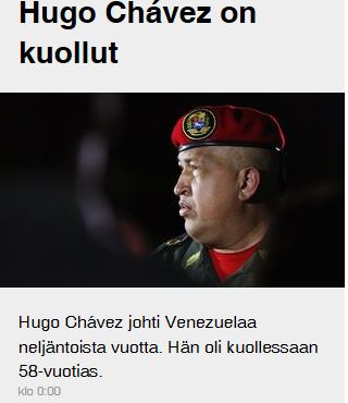 Pieni yksityiskohta on, että Hugo Chavés kuoli täsmälleen 60 vuotta Josef Stalinin kuoleman jälkeen.