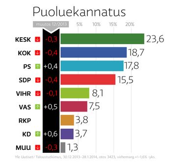 - – Siellä varmasti samoista äänestäjistä kilpaillaan ja perussuomalaiset ovat saaneet yhä enemmän kannattajia työväestöstä ja SDP:llä tilanne on vähän päinvastainen, Taloustutkimuksen Pajunen tulkitsee. Yle 29.1.2014