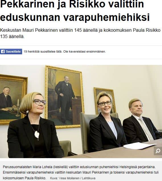 Varapuhemiehet Mauri Pekkarinen ja Paula Risikko ovat kokeneita monipuolisia