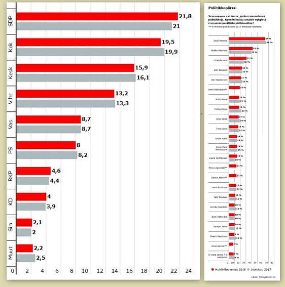 Ja viereisessä politiikkopörssissä Antti Rinne on noussu ohi Petteri Orpon ja Juha Sipilän.