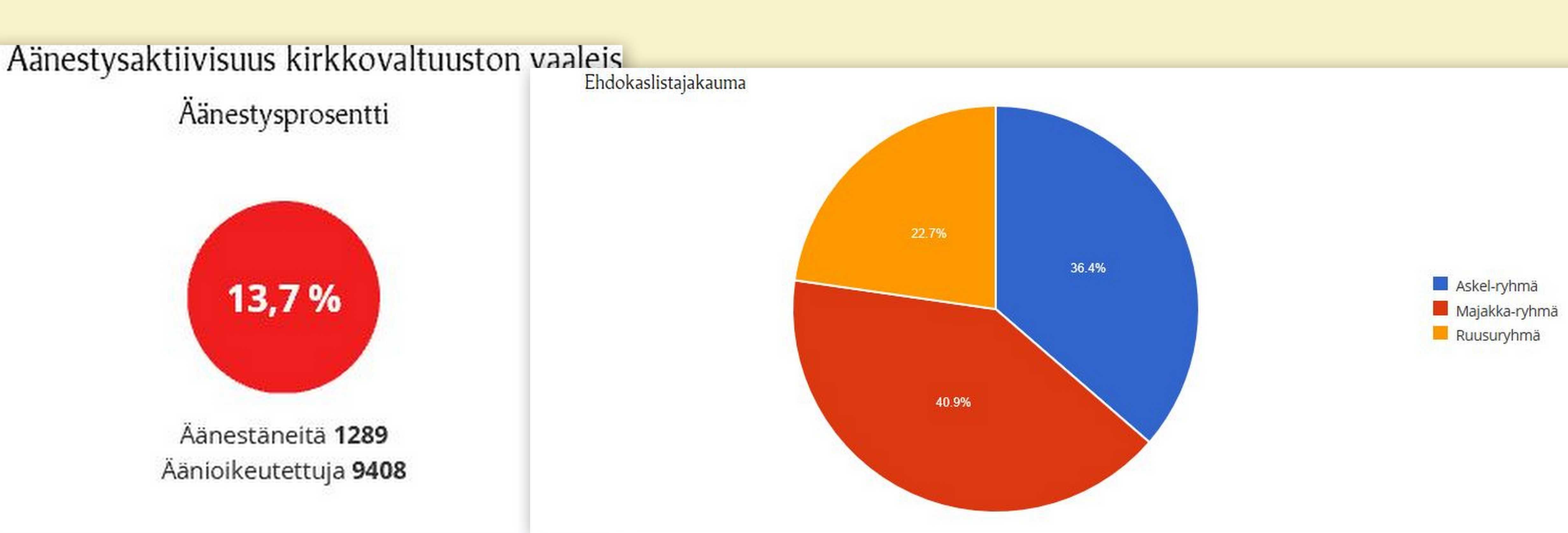 Seurakuntavaali-into laski ja jakautumassa ei suuria muutoksia.