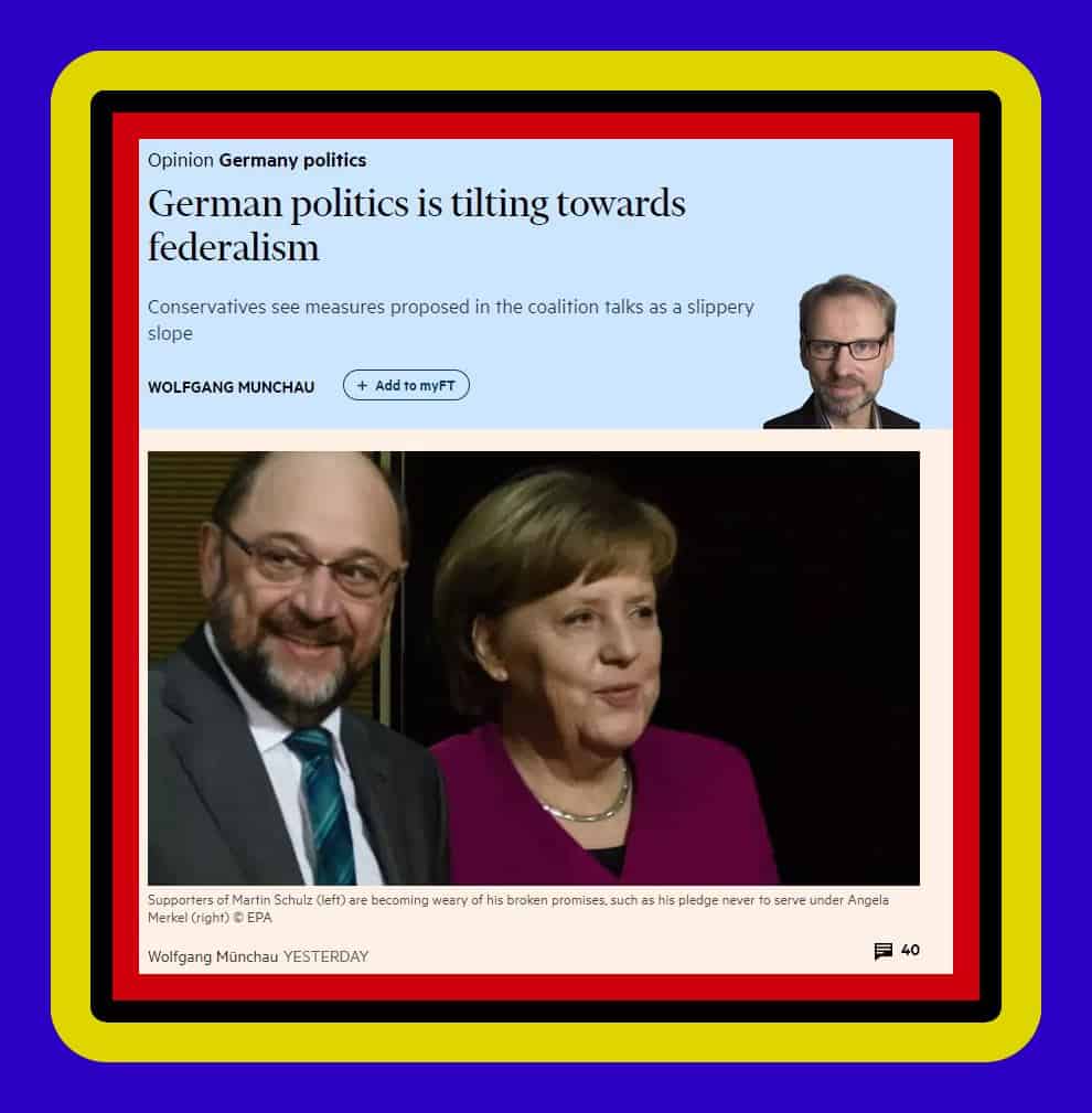 Wolfgang Münchau arvioi FT:n kolumnissaan Saksan tilannetta juuri nyt, kunn hallitusneuvotteluissa pyritään ratkaisuihin.