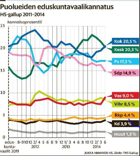 Vih­rei­den ja Sdp:n kan­nat­ta­jat ovat epä­var­mim­pia. HS 13.6.2014