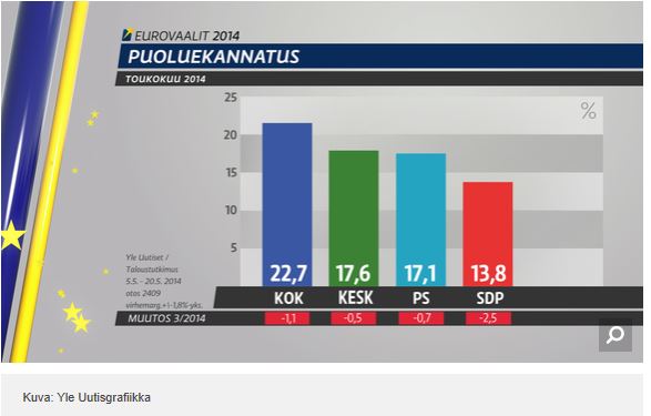 Kylmää kyytiä SDP:lle ja niinpä Ylen yllä olevassa selostuksessa käännetään katsetta SDP:n puheenjohtajavaihdokseen. Huomio on ollut puheenjohtajakisassa – ei eurovaaleissa, sanoo asinatuntija telkkarissa.