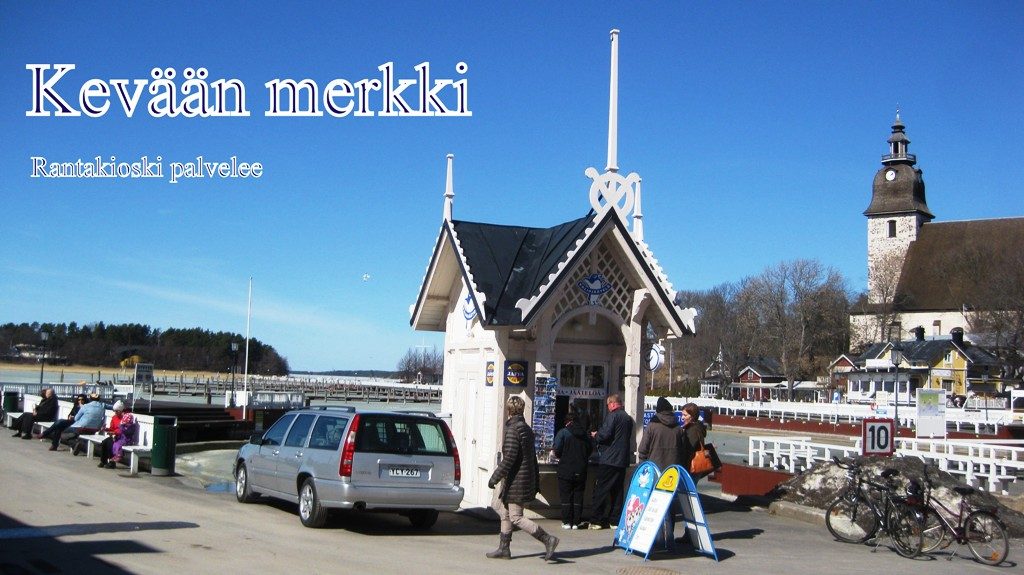Kiurut, peipot, töyhtöhyypät ovat lentäviä kevään merkkejä. Vuokot maassa ja nokkos- ja sitruunaperhoset lepattelemassa puhuvat nekin talven selän taittumisesta. Mutta Rantakioski avaa kaikkien silmät kevääseen. Hyvällä mielellä jonotetaan jätskiä, jota saimme aikoinaan odottaa kesälomien alkuun asti.