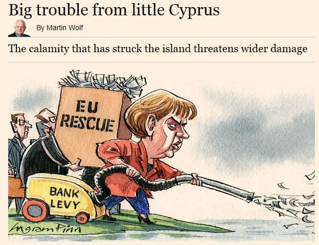 Martin Wolf aloittaa kolumninsa vanhalla vitsillä siitä, että kameli on komitean suunnittelema hevonen. Tämä on epäreilua kamelia kohtaan, koska se tarkoituksenmukainen toimintaympäristöön. Mutta sitä samaa ei voi sanoa  Kyproksen pelastusohjelmasta rakenteeseen. Näillä konsteilla ei ongelmasta päästä. Tapaus onkin hyvä esimerkki siitä mitä julkisen talouden lainojen hoitamiseksi ei pidä tehdä.
