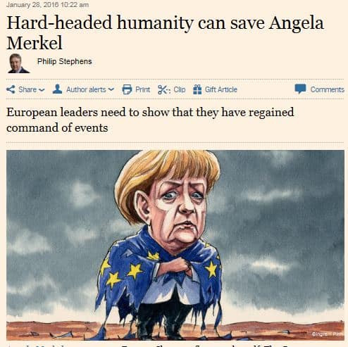 puhuu FT:ssä Euroopan tulevaisuudesta ja siitä, että se on paljolti Angela Merkelin